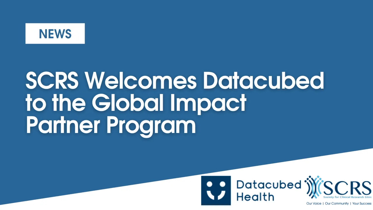 “Clinical solution providers who recognize the importance of incorporating the site experience and user case into their product and program plans share an advantage,” said Sean Soth, Vice President of Global Business Partnerships for SCRS. “Datacubed Health is designing intentional and engaging patient experiences in clinical trials. Incorporating point of care ideas for site and patient is critical to technology that moves research forward. SCRS is pleased to welcome Datacubed Health into the Global Impact Partner program.”
